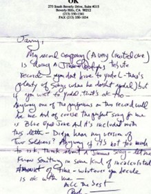 Anyway one of the performers on this record will be me and of course the perfect song for me is Blue Eyed Jane. And it’s included with this letter – Did ya hear my version of “Two Soldiers”? Anyway if it’s not too much to ask, think about a Jimmie song – let me know something in some kind of incalculated amount of time – whatever you decide is ok with me –