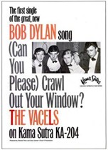 Jimi is early on it, but he is not the first. The New York band The Vacels were much earlier – remarkably even earlier than Dylan himself. Their single “Can You Please Crawl Out Your Window” b/w “I’m Just A Poor Boy” was released in September 1965 – three months before Dylan’s single came out in December.